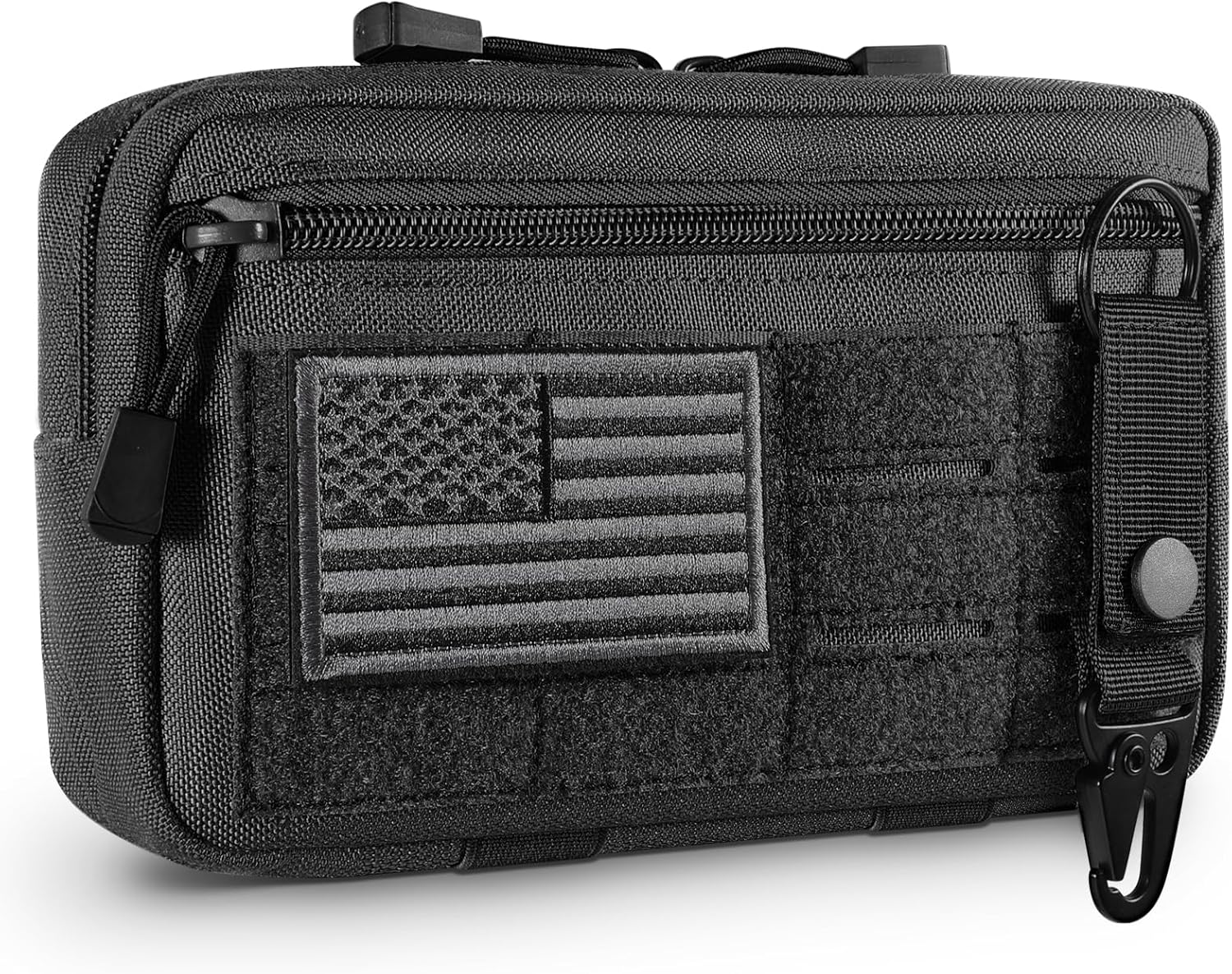 Bolsa de administración Molle, bolsa para herramientas EDC con corte láser, bolsas modulares horizontales, incluye parche de bandera de EE. UU. y llavero.