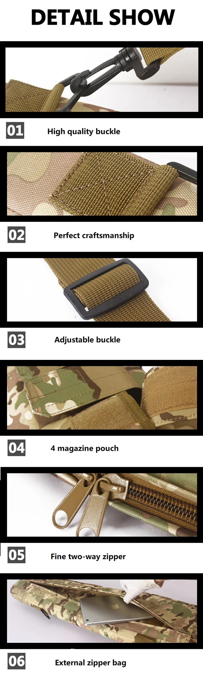 - Color : Black, tan, green, ACU,Multicam