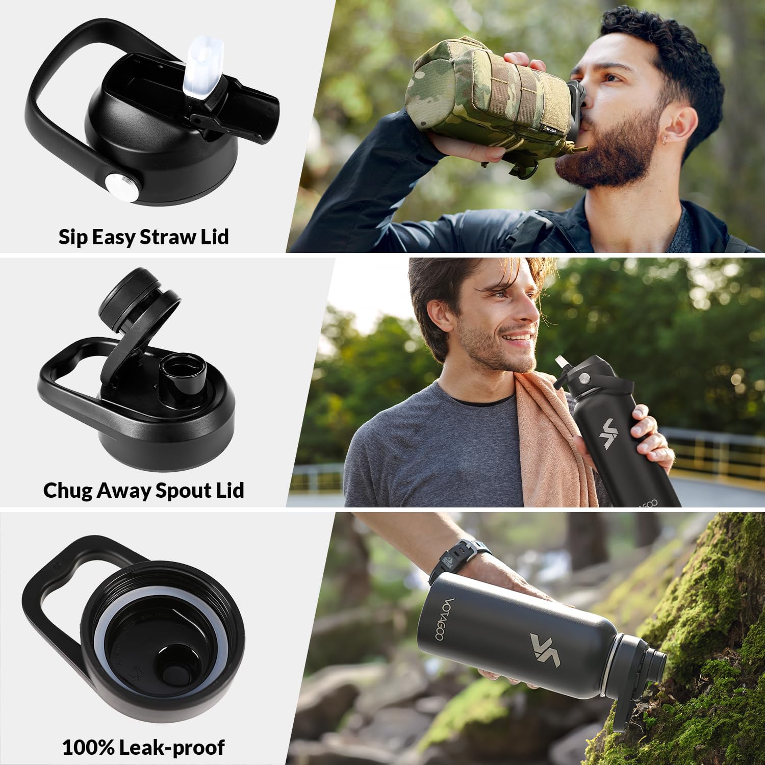 This insulated tactical water bottle is crafted from high-quality double-wall stainless steel and military-grade fabrics. Unlike plastic bottles, this metal water bottle is more solid, durable, rust-resistant, and sweat-free. The 32 oz capacity ensures you stay hydrated at work, the gym, or during outdoor activities.