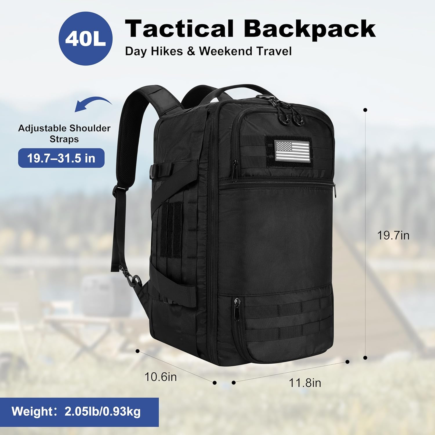 40L Tactical Backpack for Men 3 in 1 Gym Bag Tactical with MOLLE System Waterproof 600D Black Backpack for Travel,Outdoor Sports,Camping,and Weekend Trips