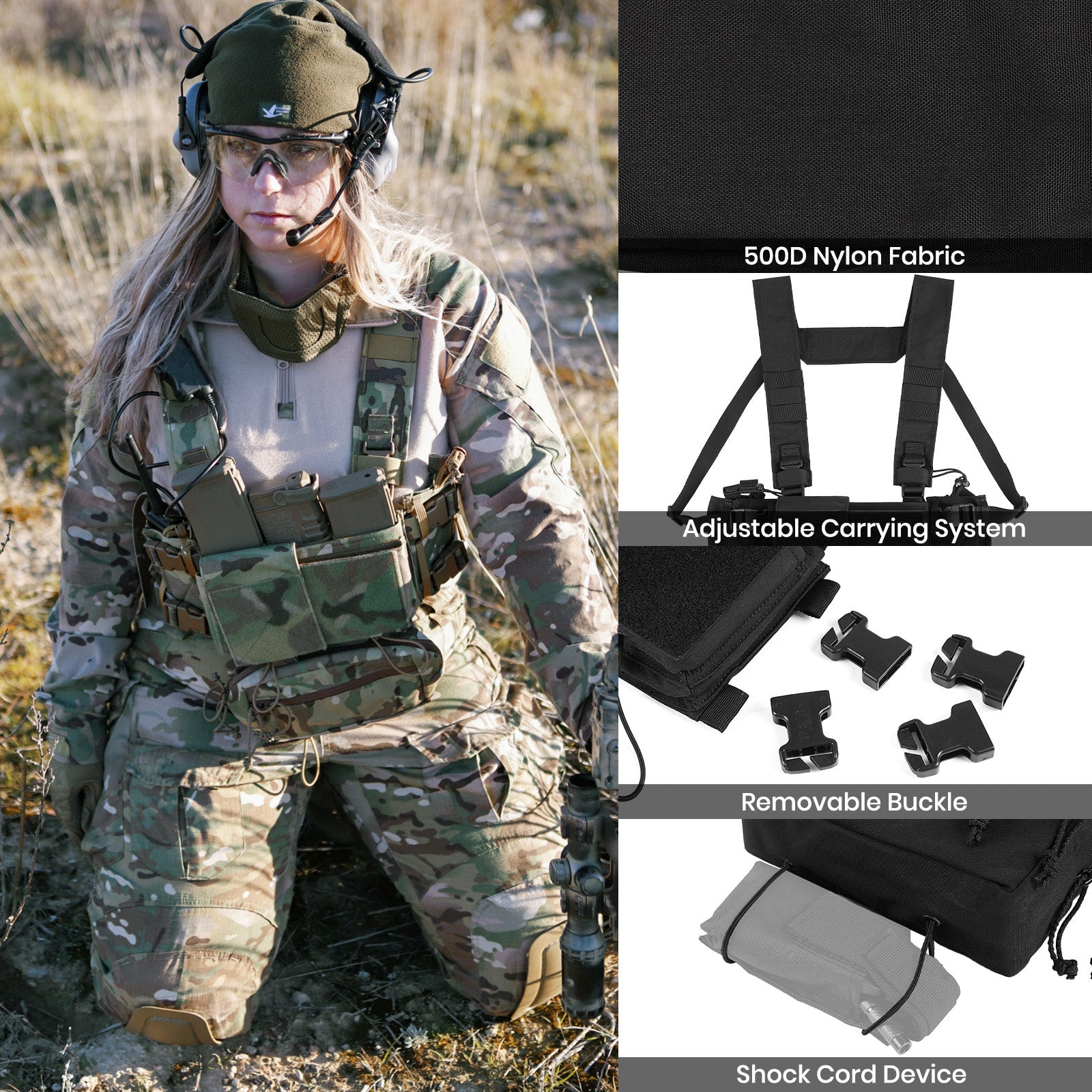 Durable 500D Nylon Construction – Built with high-quality 500D nylon, this chest rig is wear-resistant, water-repellent, and highly durable for demanding environments. The adjustable shoulder and waist straps ensure a secure and comfortable fit for most users, maintaining mobility and ease of use.