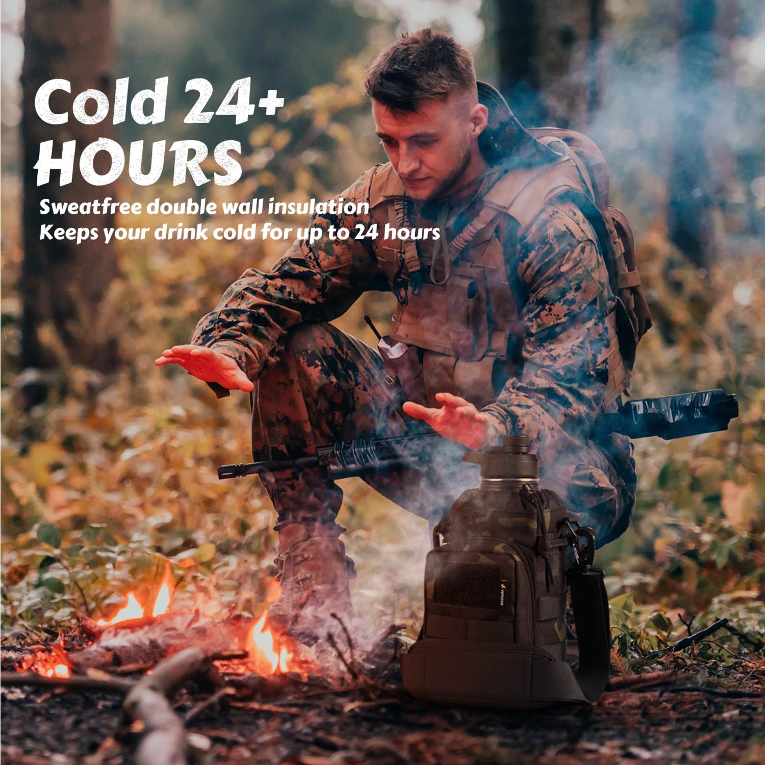 The tactical water bottle features a double-layer insulation design and vacuum-sealing. Made from 18/8 food-grade stainless steel, it ensures superior performance for keeping beverages cold for up to 48 hours and warm for up to 24 hours. Non-toxic and BPA-free, it performs in any weather condition, making it your go-to 1/2 gallon water bottle. Whether you’re on duty, training in survival scenarios, competing in airsoft matches, or enduring long outdoor treks, this bottle guarantees hydration in extreme conditions.