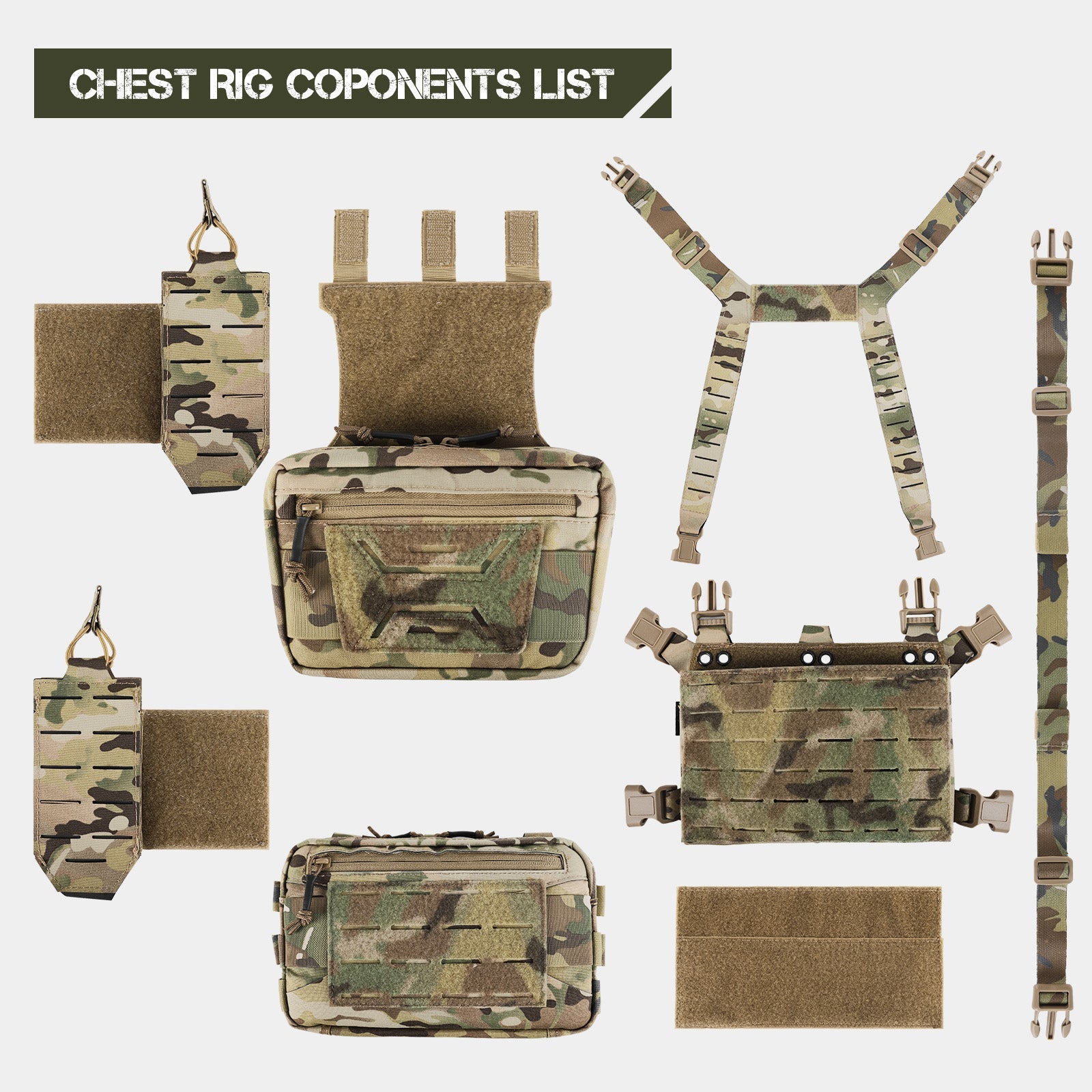 Designed to accommodate a wide range of body types, the rig features an adjustable H-harness for a snug, secure fit that ensures stability during movement. Its ergonomic design evenly distributes weight to reduce fatigue during prolonged use. Detachable buckles and elastic cords offer additional utility, such as securing tourniquets or other quick-access tools—enhancing its value for military professionals, survivalists, and competitive airsoft players.