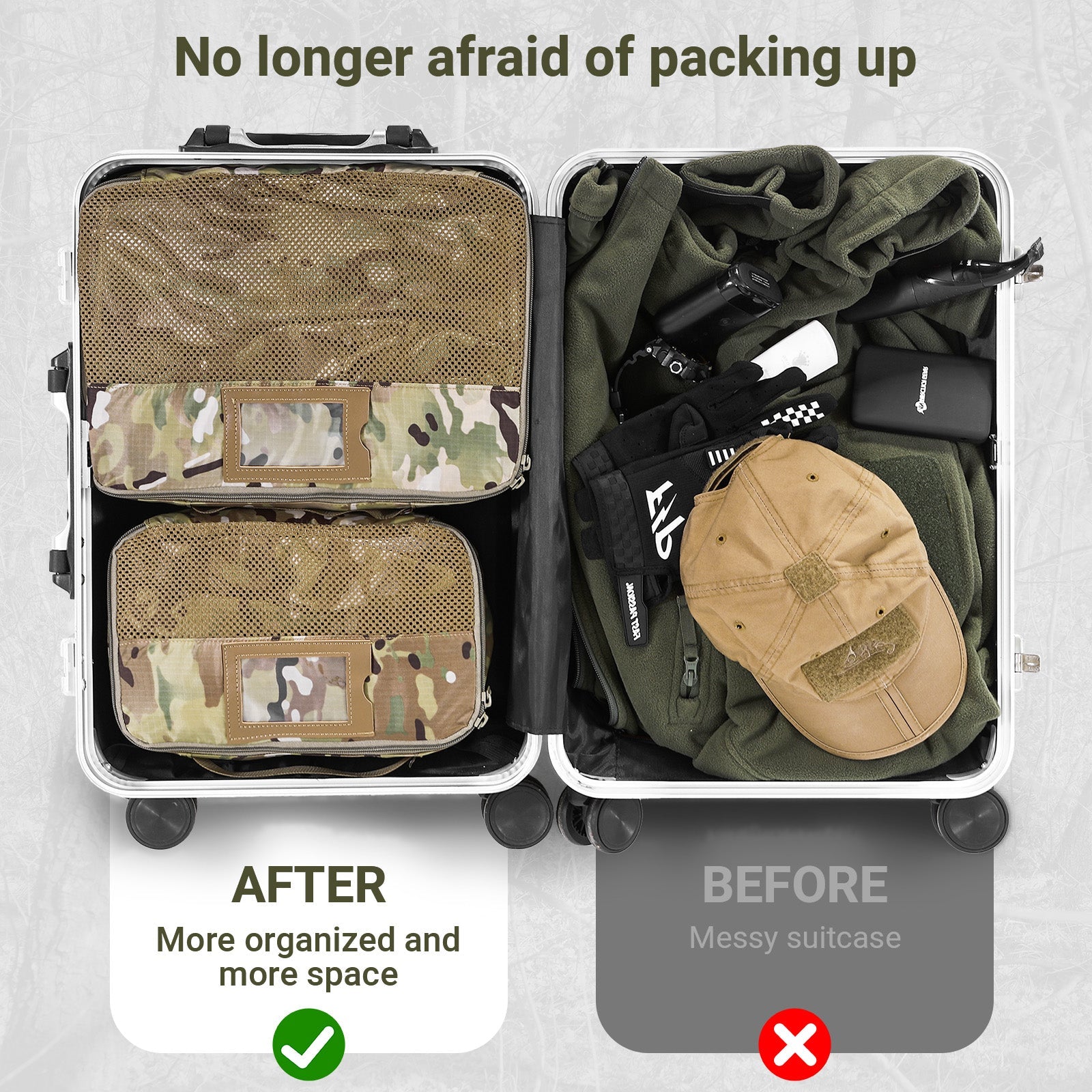 Perfect for organizing clothes, toiletries, and accessories, these cubes help you locate your items without hassle. Compatible with carry-on luggage, duffel bags, suitcases, and more, they are ideal for business travel, hiking, camping, and tactical operations. Designed for those who demand efficiency, whether for law enforcement use, an outdoor expedition, or an airsoft tournament, these cubes offer the adaptability needed for any adventure.