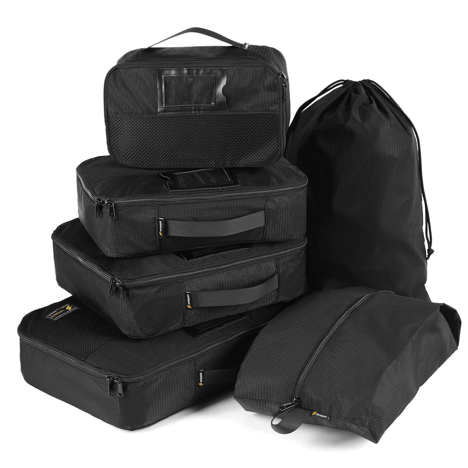 The set includes four different sizes (S, M, L, XL), along with a drawstring bag and a dedicated shoe storage bag. These cubes can store clothes, towels, socks, shoes, toiletries, electronics, and outdoor gear. Whether used by military professionals on deployment, survivalists organizing emergency kits, or airsoft players packing field essentials, these packing cubes provide a durable and reliable storage system for any situation.
